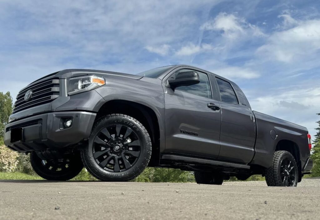 This 2021 Toyota Tundra Nightshade Double Cab 4×4 shows 23,000 miles and features the factory Nightshade Special Edition package, adding black exterior accents, 20-inch wheels, and black leather upholstery. Finished in Magnetic Gray Metallic, the truck is powered by Toyota’s durable 5.7-liter iForce V8 paired with a six-speed automatic transmission, a dual-range 4WDemand transfer case, and a limited-slip rear differential.